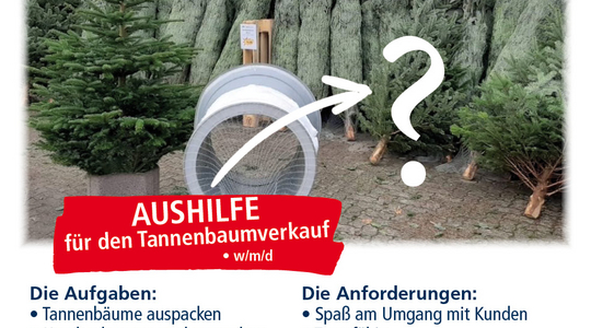 Für unseren Tannenbaumverkauf suchen wir in Bützow eine tatkräftige Aushilfe.